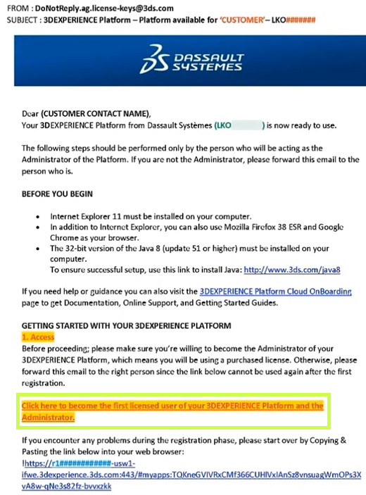 - Check your welcome email from Dassault Systèmes