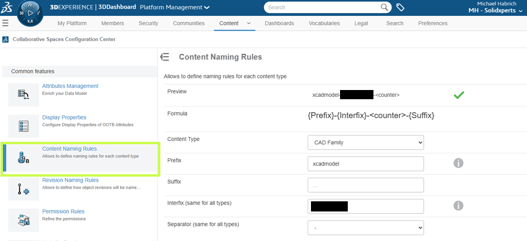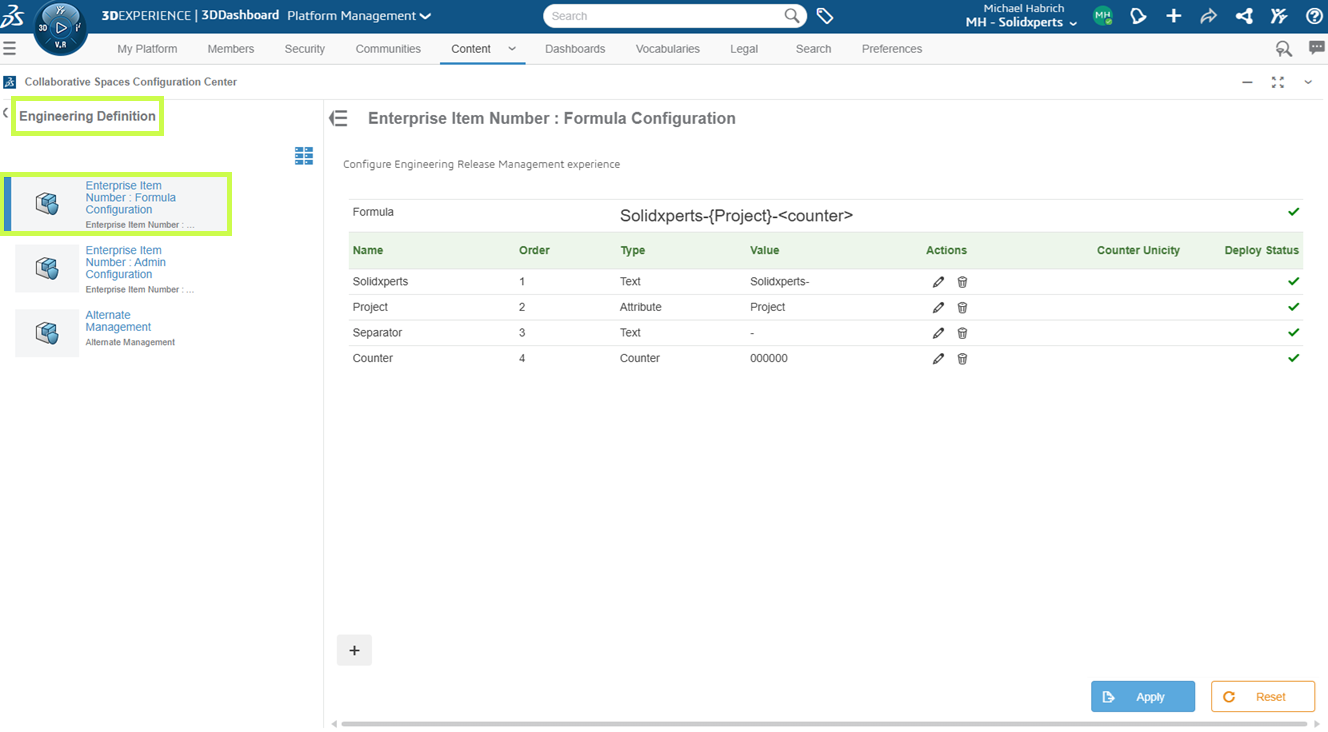 Setup happens in the Collaborative Spaces Configuration Center under: Engineering Definition > Enterprise Item Number: Formula Configuration.