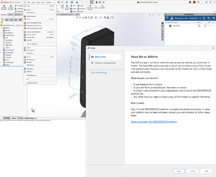 Work together without ever leaving your design space. Collaborate through the SOLIDWORKS User Forum, share files via 3DDrive and 3DSwym, and eliminate the need for conversions or third-party tools.