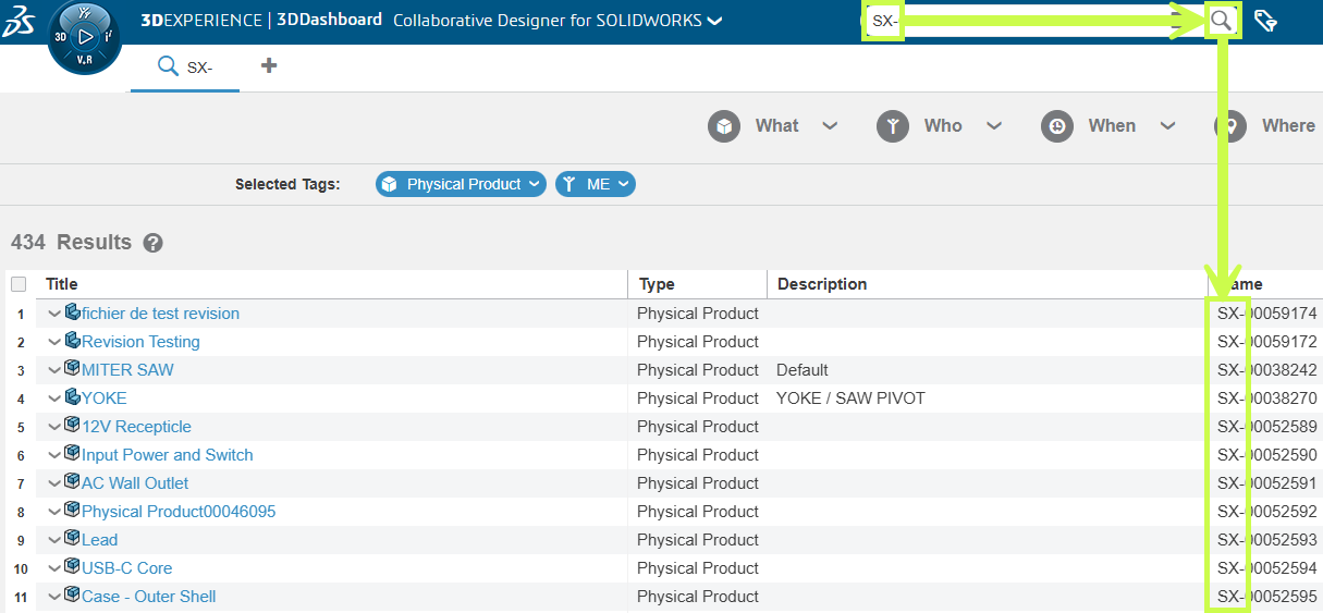 1. Utilisez le champ de recherche en haut de votre session (ou le Bookmark Editor si le fichier est déjà signetisé) pour localiser votre assemblage de niveau supérieur.