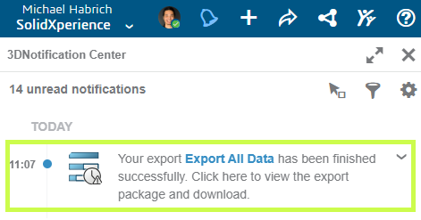 10. Une fois l’exportation terminée, vous recevrez une notification dans le 3DNotification Center.