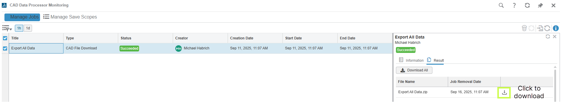 - Les tâches volumineuses peuvent être suivies dans l’application CAD Data Processor Monitoring.